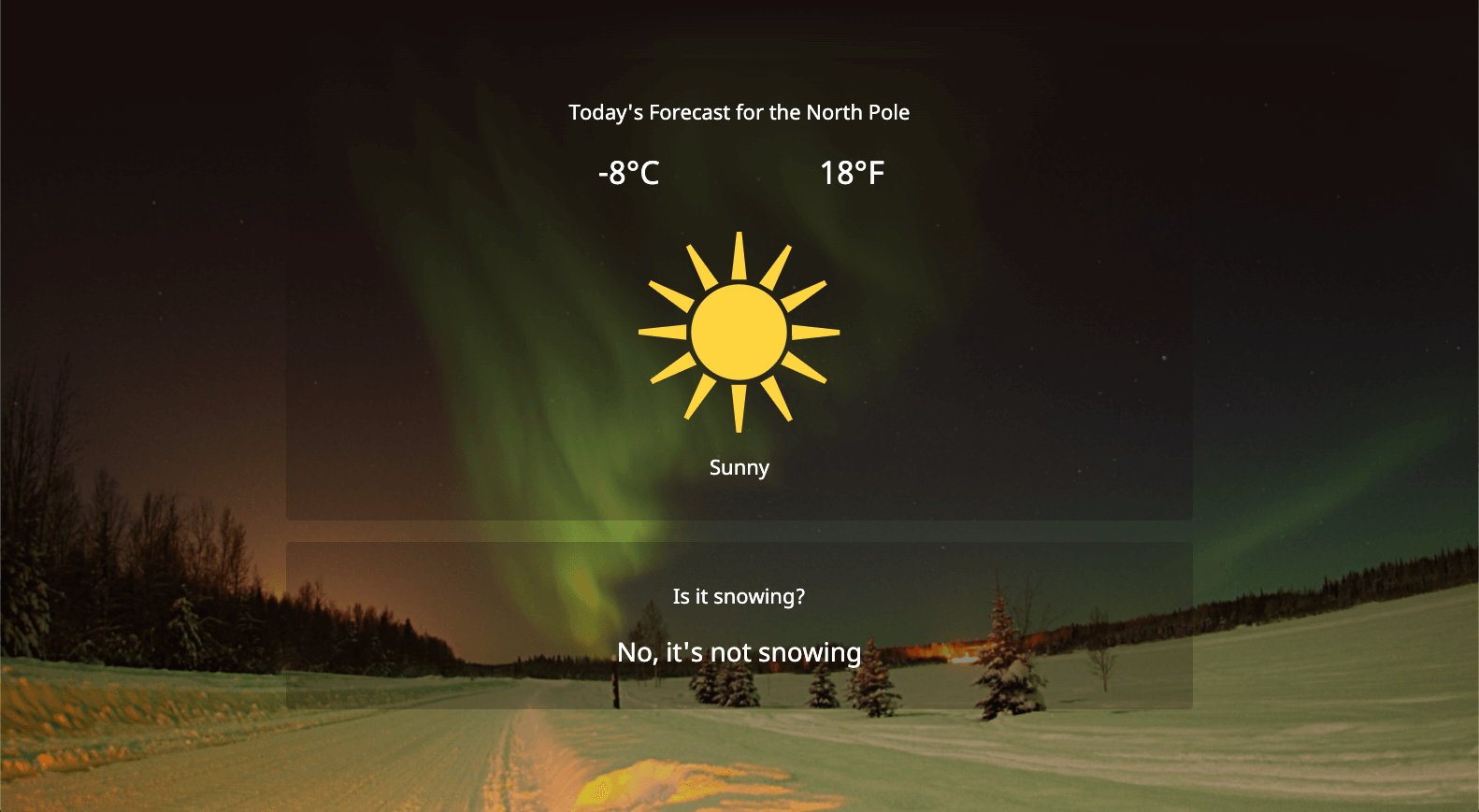 ...And that’s all there is to it! We now have an app to check the weather at the North Pole.