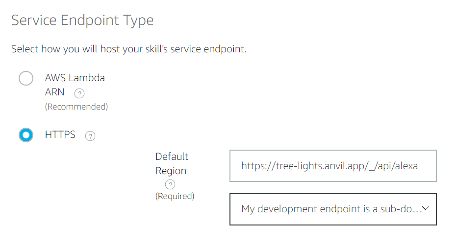 Back in the Alexa Skill Builder, set the endpoint to the URL of your Server Function: