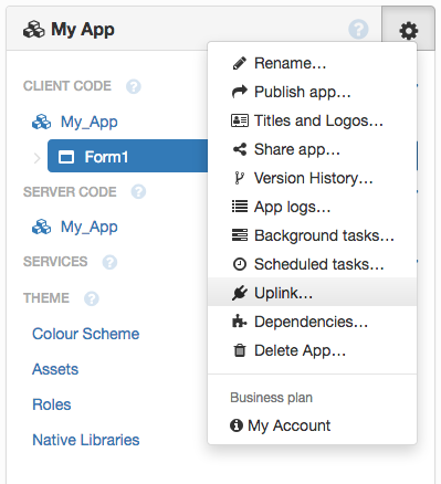 To enable the Uplink, we open the gear menu and click “Uplink”: