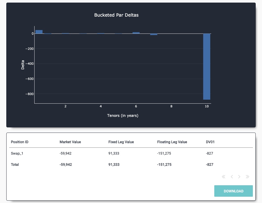 Interest rate swaps are bespoke financial products, so they can vary greatly. For example, the frequency of payment will differ from one IRS to the next. Keeping track of them thus requires extensive modelling. Some the key metrics that can be modelled are the net present value (NPV) of the swap and the risks associated with the NPV when the underlying interest rates change. QuantLib is used by trained quantitative analysts for modelling, trading and risk management. In this app, we’ll use it to perform valuations and sensitivity analysis on interest rate swaps.