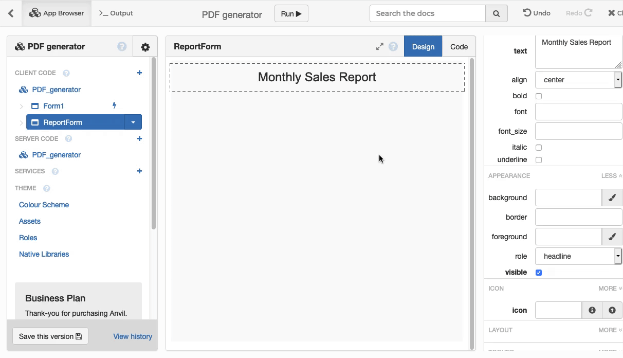 - Designing our first PDF with Anvil’s drag-and-drop designer