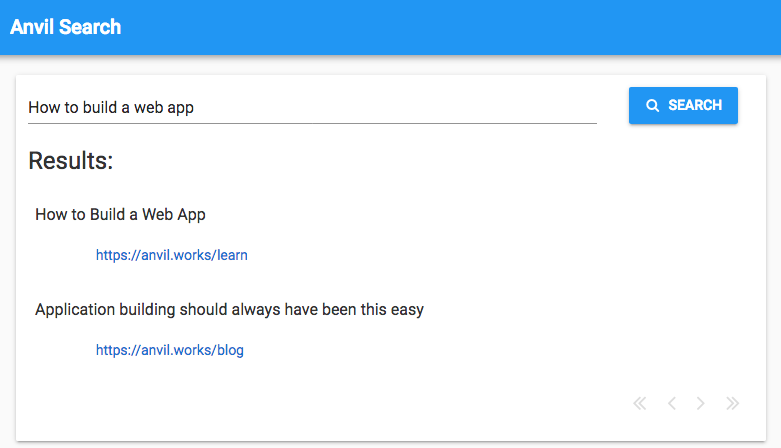 Or sign up for free, and open our search engine app in the Anvil editor: