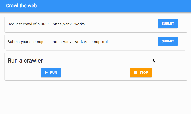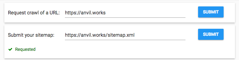Stealing shamelessly from Google Search Console, I’ve created a webmaster’s console with ‘submit’ buttons that