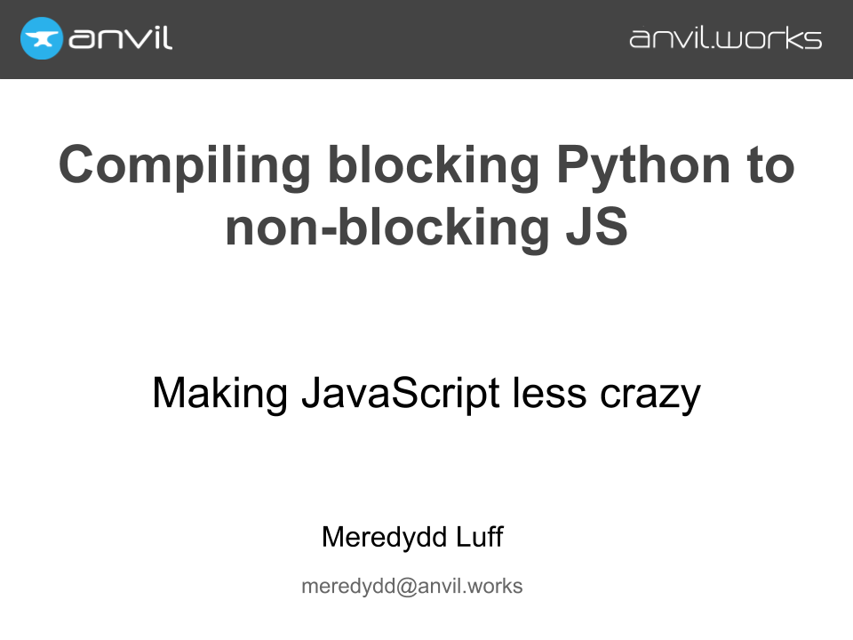 And if you’re fed up to the back teeth with all this Javascript, and you want to forget it all and write full-stack web apps with nothing but Python, please check us out at anvil.works.