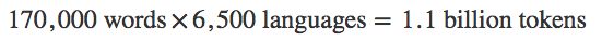The upper limit on my index size is much, much smaller. There are about 170,000 words in English, and about 6,500 languages in the world. That gives us an estimate of the size of the index: