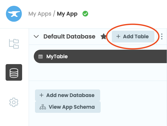 To add a data table to your app’s Default database, open the database window