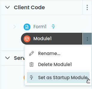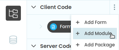 Let’s create a module. Open the menu next to “Client Code” in the App Browser, and select ‘Add Module’: