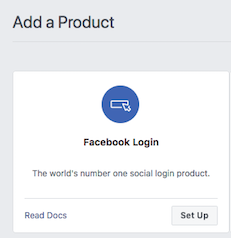 After some basic setup steps, you’ll be presented with ‘Add A Product’. Add Facebook Login.