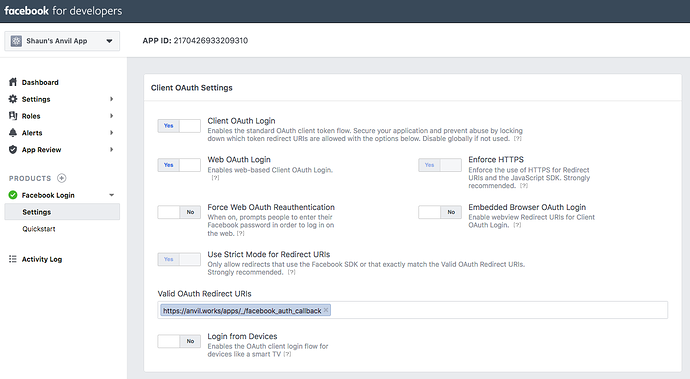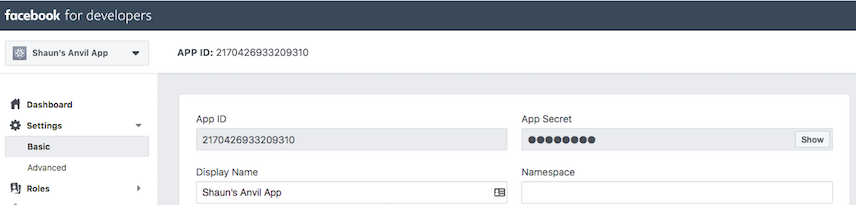 Follow these steps to configure Facebook to allow Anvil to communicate with it.