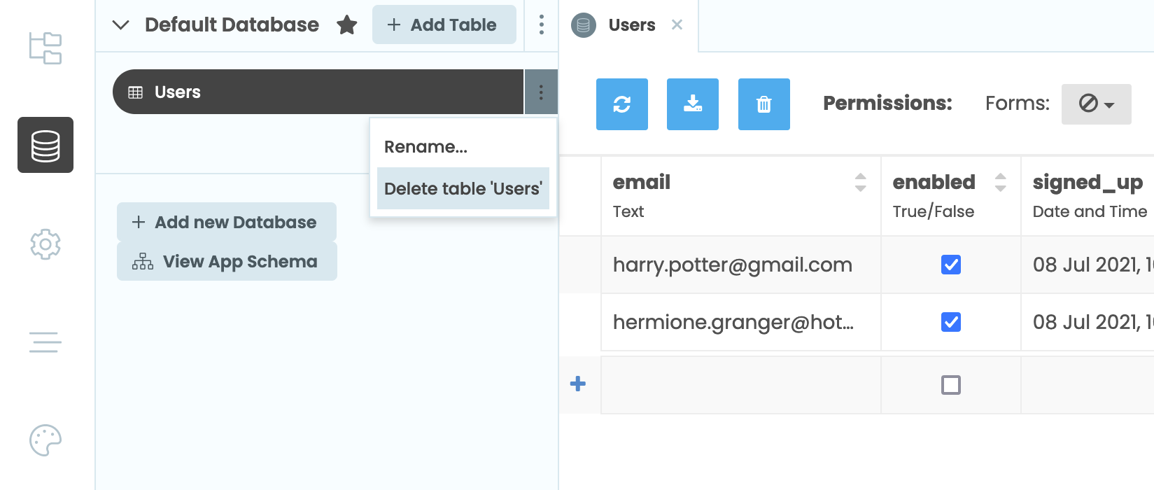 You don’t have to use this table, you can use any table you like. Just delete the auto-generated table from your apps default database:
