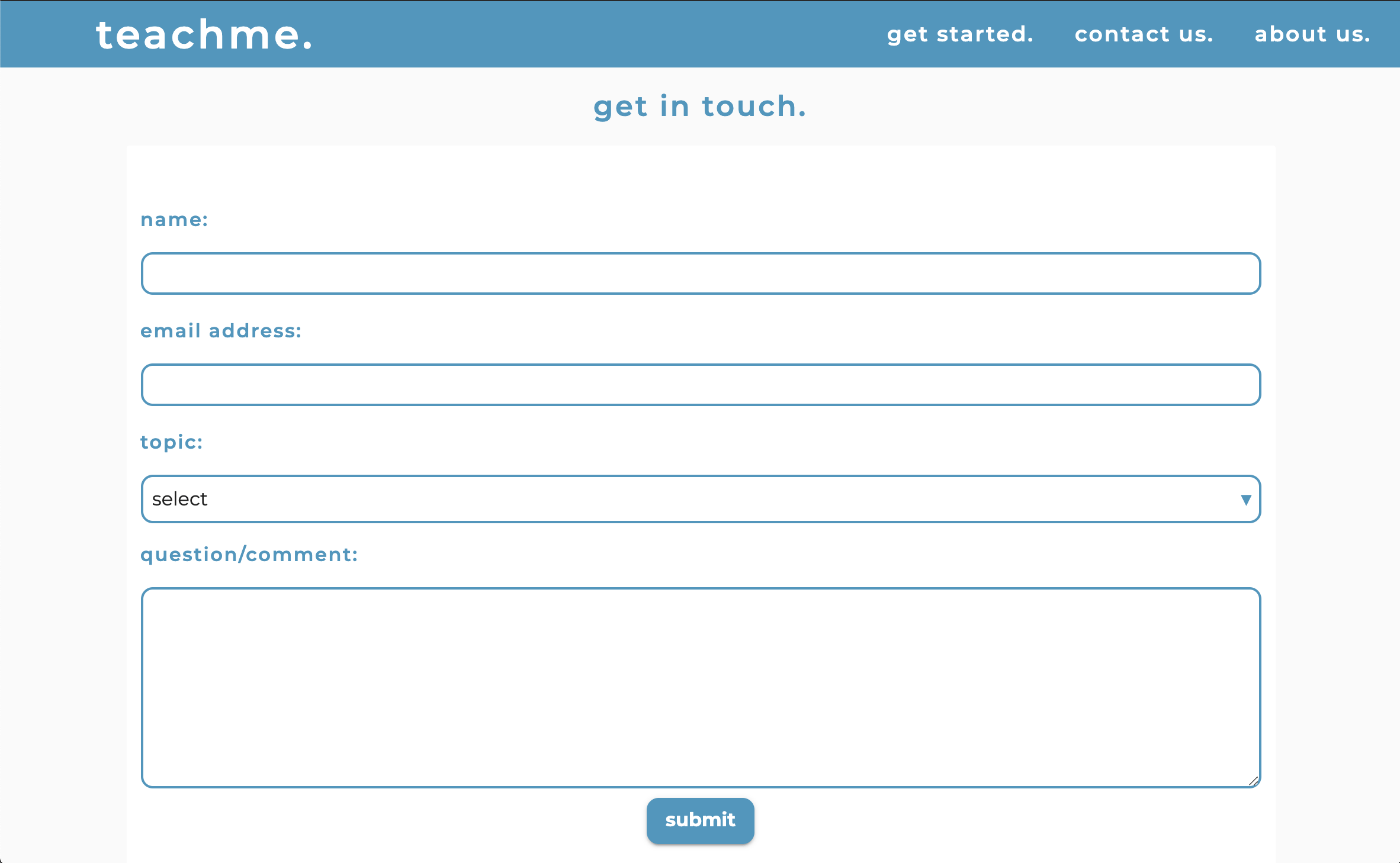 The Contact Us page consists of a form so that customers can submit questions and comments. The TextBoxes, TextAreas and DropDown menus were modified to have a more stylized look befitting of the theme. When the submit button is clicked, the entries are stored into a DataTable and emailed to the app owner.