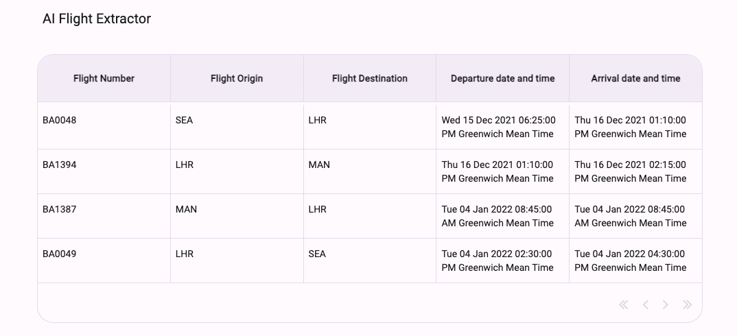 The finished app will extract flight details from an email using OpenAI’s Chat API, and display them in a table where you can see your flight’s origin, destination, arrival and departure time. We’ll set up an email service and user authentication so that each user only sees their own flight details.