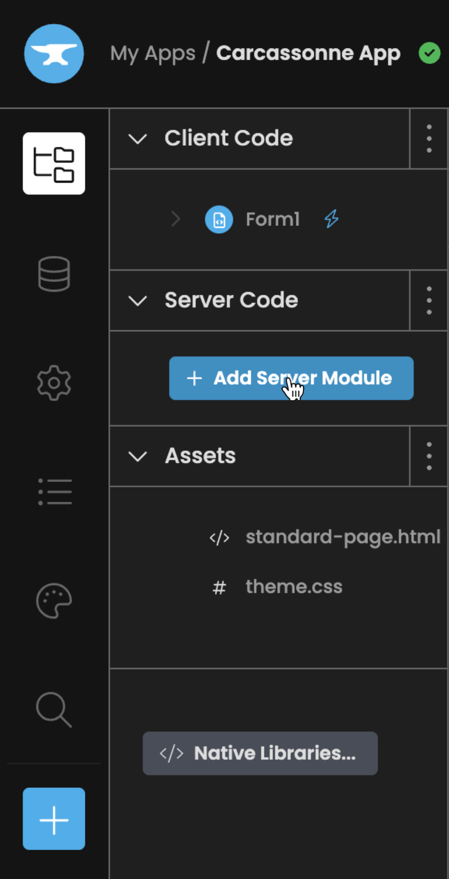Create a new Anvil app, re-name it and add a server module.