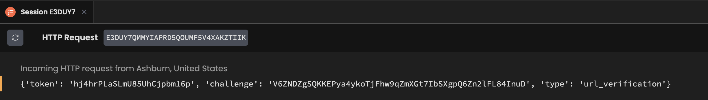 Let’s go back to our app and see what the request looks like in our app and then change our function to return the challenge parameter. In the App Logs, we should see the request that came from Slack and the JSON object printed out. It should look just like Slack said it would.
