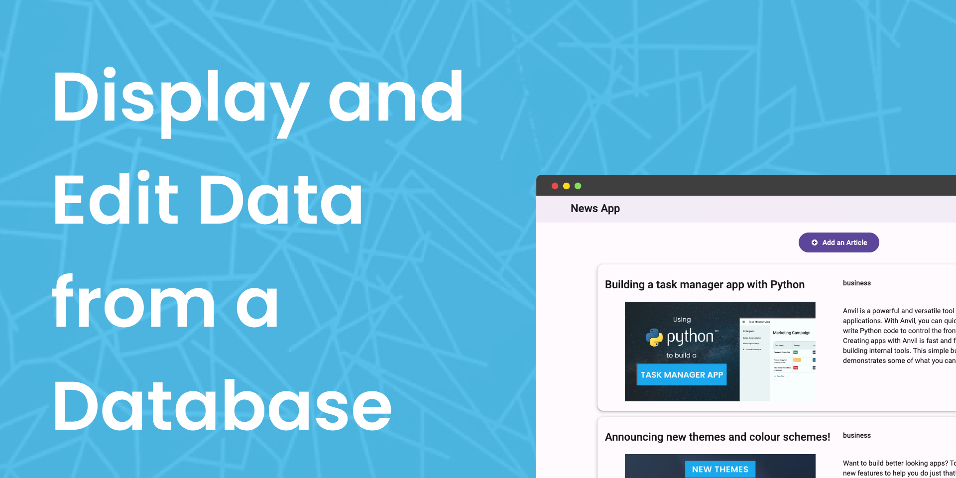 Head to the Anvil Learning Centre for more tutorials, or head to our examples page to see how to build some complex apps in Anvil.