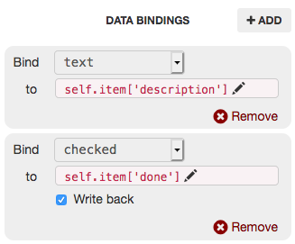 We set the CheckBox’s text property to the ‘description’ column, and its checked property to the ‘done’ column.