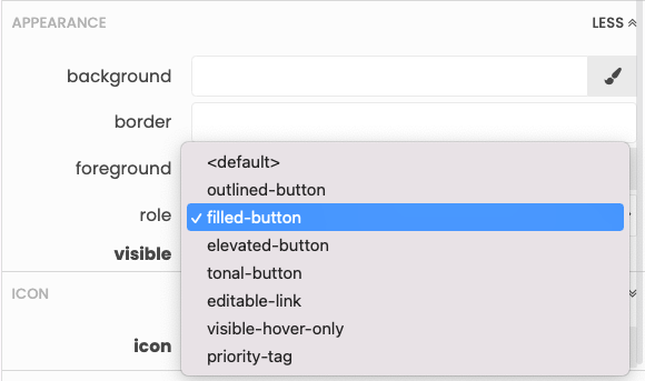 self.create_button.role = 'filled-button'Some roles, such as the outlined role, apply to multiple components. Components with the outlined role can be found as shortcuts in the Toolbox, so you can easily add components with that role onto your forms.